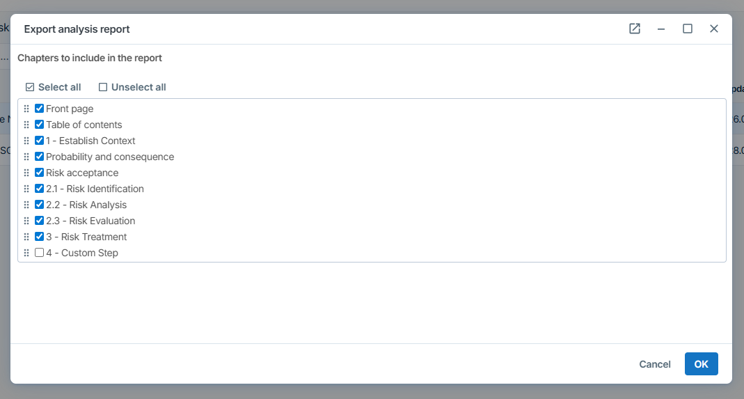 - Export der Risikoanalyse