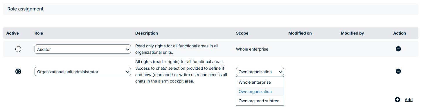 - Auftraggeber und Auditor – diese beiden Rollen haben immer den Geltungsbereich „Gesamte Organisation“.