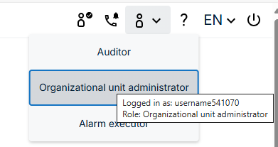 - Durch Klicken auf das Personensymbol in der oberen rechten Ecke des Bildschirms. Dadurch wird eine Liste Ihrer verfügbaren Rollen geöffnet, die anzeigt, welche Rolle derzeit aktiv ist. Dies ermöglicht es Ihnen, mit einem einzigen Klick zu einer anderen Rolle zu wechseln.