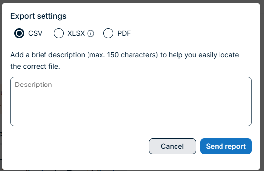 Sie können die gewählten Gruppen entweder als csv-, excel-Datei oder als PDF exportieren. Für PDF können Sie zusätzlich wählen, ob Sie alle Geräte einbeziehen möchten. Dann werden die Werte der Geräte (z.B. die Telefonnummer einer Person) im PDF der Gruppenaufstellung hinzugefügt. Diese Option ist nicht für csv-Dateien verfügbar. Geben Sie eine Beschreibung ein, um Ihre Datei leicht zu finden, und klicken Sie auf "Exportieren". Es wird eine csv/excel/pdf-Datei mit dem Namen "groups.csv", "groups.xlsx" oder "groups.pdf" erstellt, die Sie im Download Center finden.