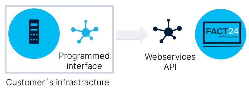 We offer a REST API to synchronize persons and groups to FACT24. Programming of the interface to your system must be performed by you or the provider of the system to be connected. Setup costs for the web service API and monthly usage fees (included in the FACT24 CIM starter edition) can be found in our price list. Recommended for 1,000 persons and over.