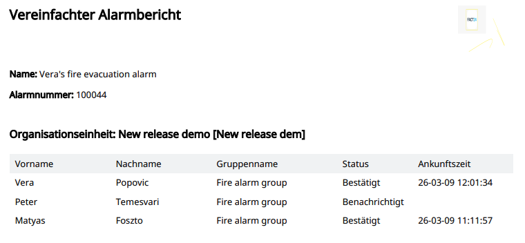 The Simplified Alarm Report now includes the time of arrival as well as the customer logo, if it has been configured in the Admin Web.