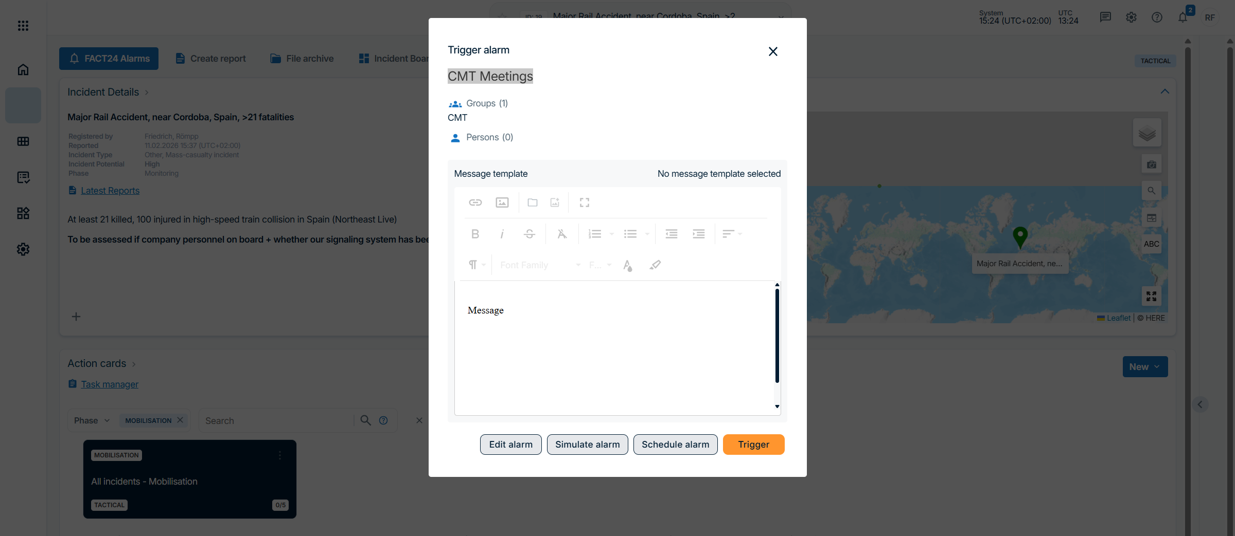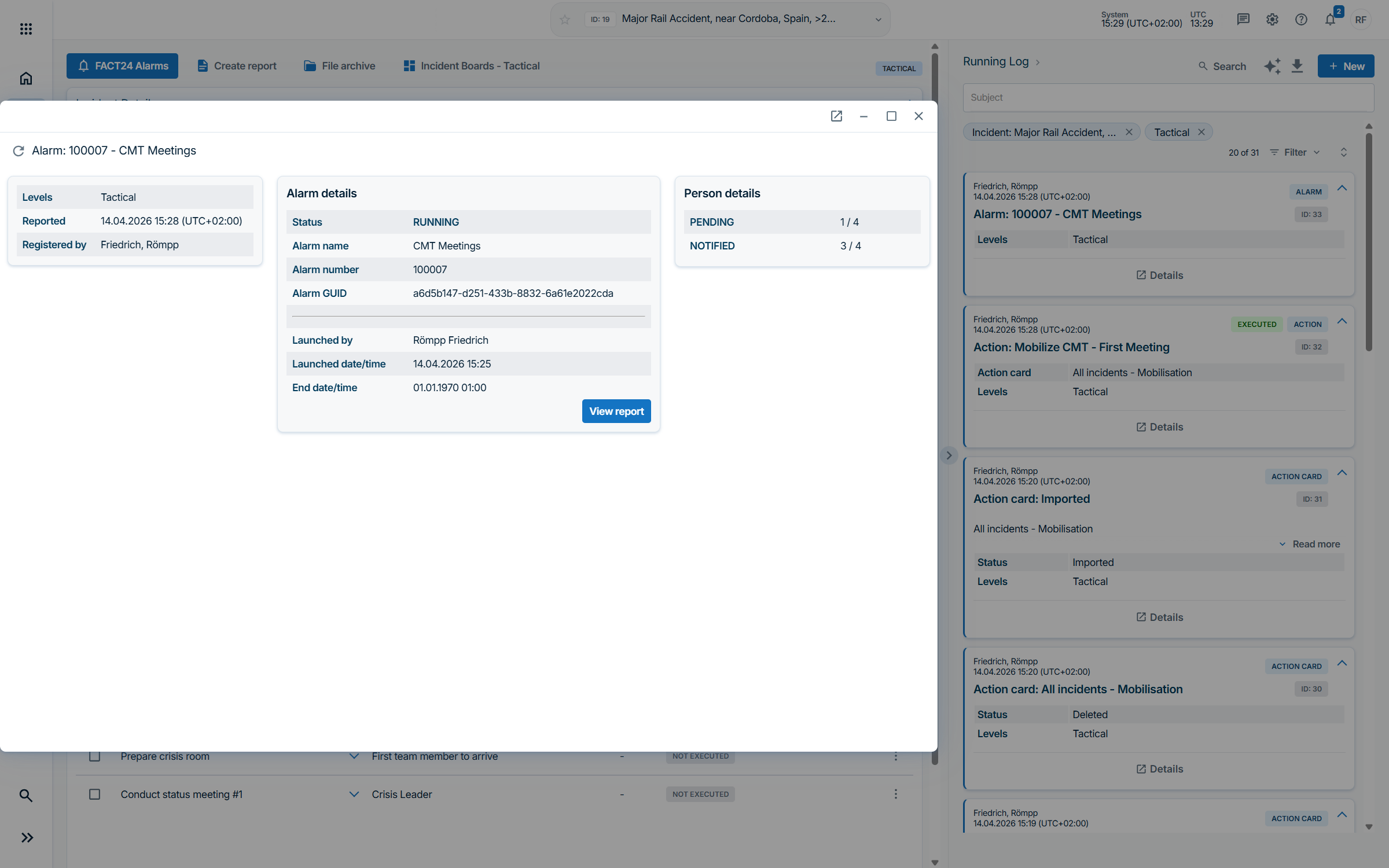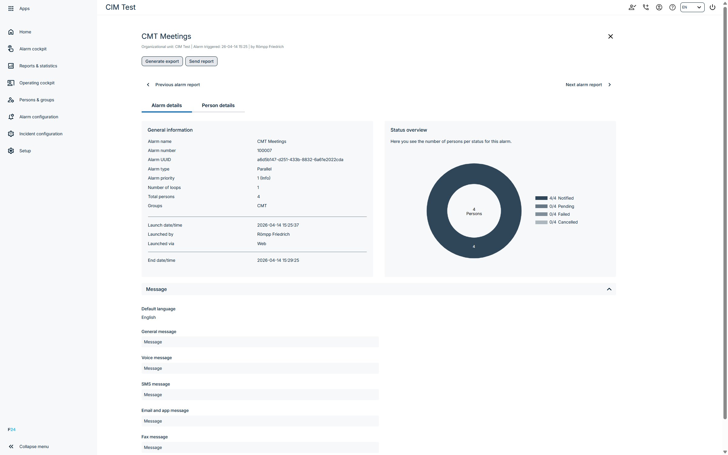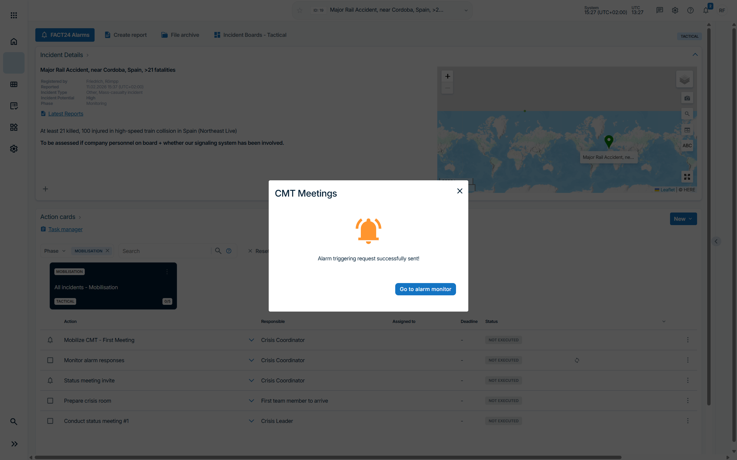 Ahora es posible iniciar, supervisar y registrar las alarmas de FACT24 ENS+ directamente en FACT24 CIM.