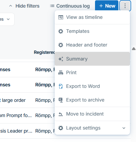 Durante incidentes que se desarrollan rápidamente, el registro en ejecución de FACT24 CIM puede crecer rápidamente con la información aportada por múltiples partes interesadas, y el resumen del registro de IA ayuda a los usuarios a comprender rápidamente los acontecimientos clave al proporcionar una descripción general concisa e informal de los eventos.